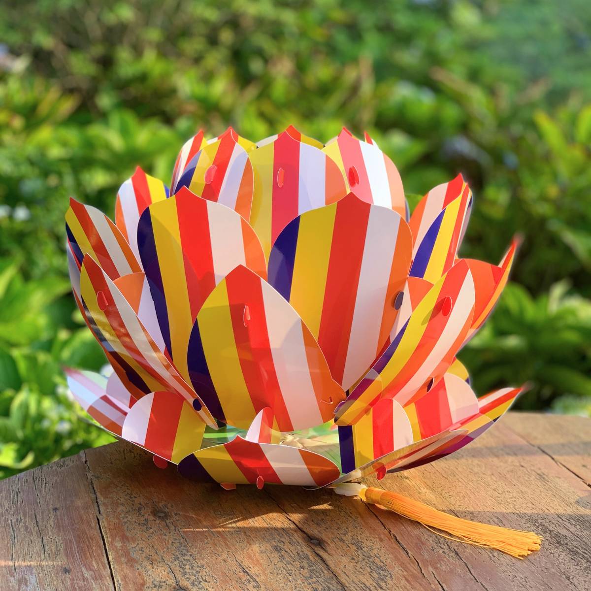Lồng đèn Phật đản, Phật giáo – Lồng đèn hoa sen OTP màu cờ – Lồng đèn nhựa tự lắp ráp – Kích thước 23x32cm #2