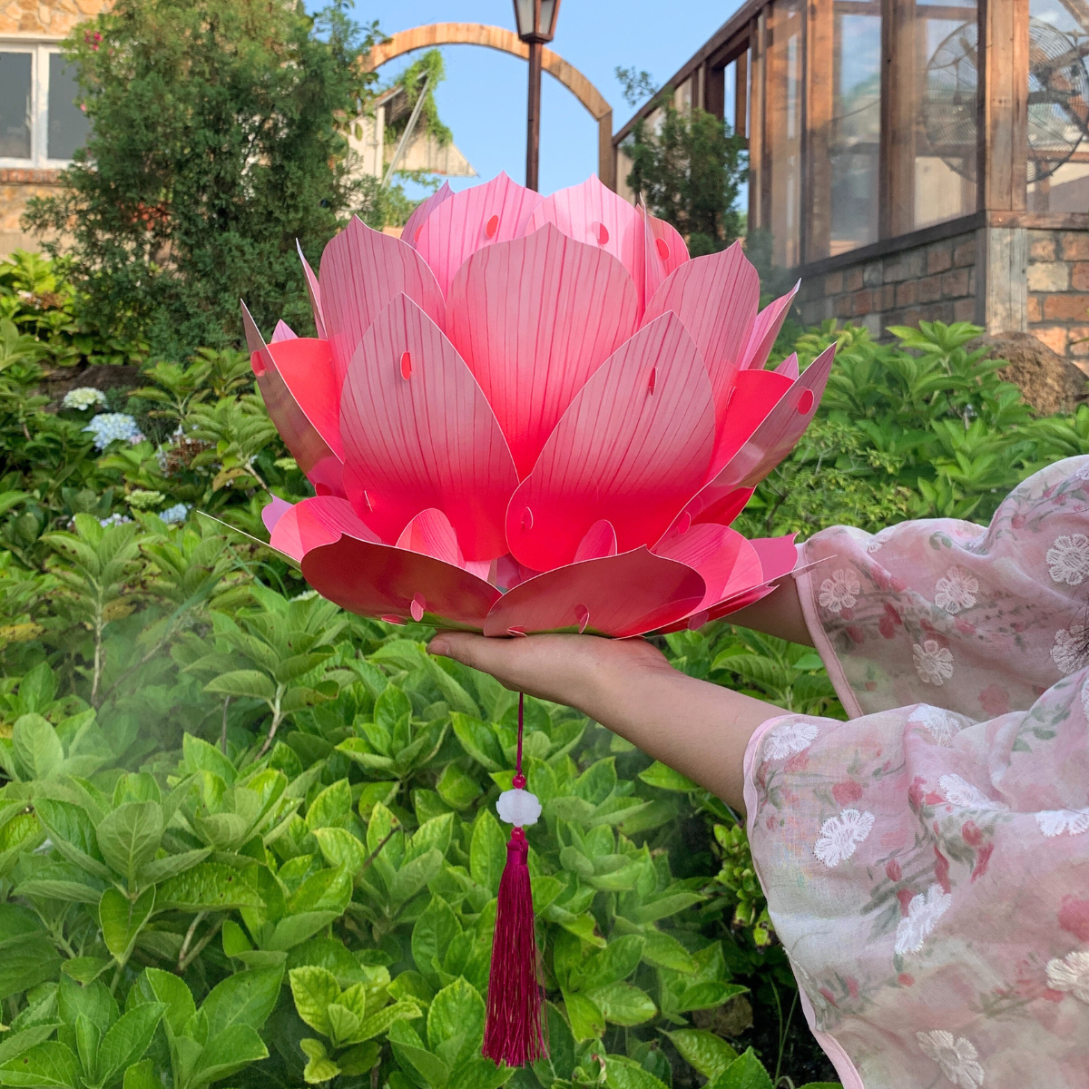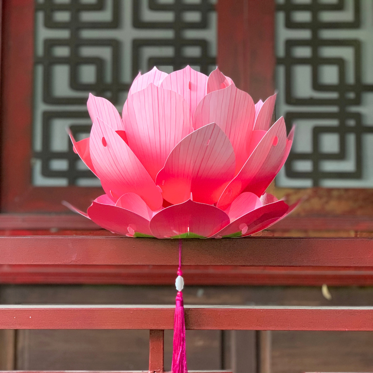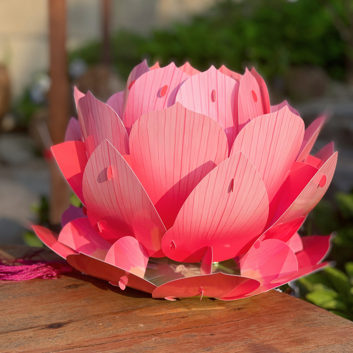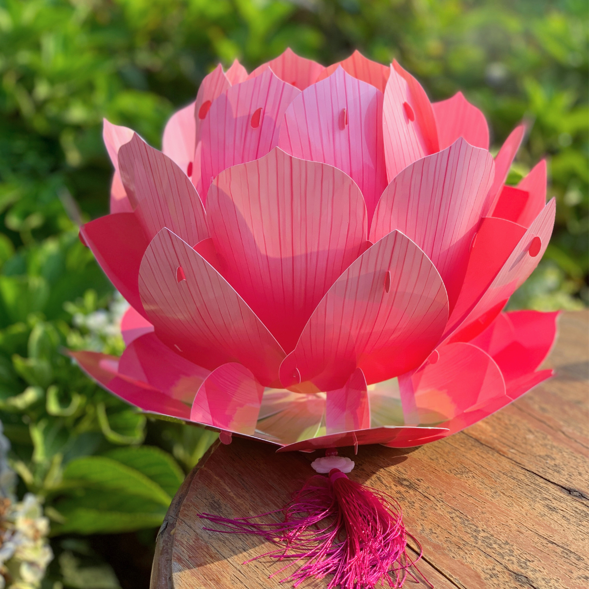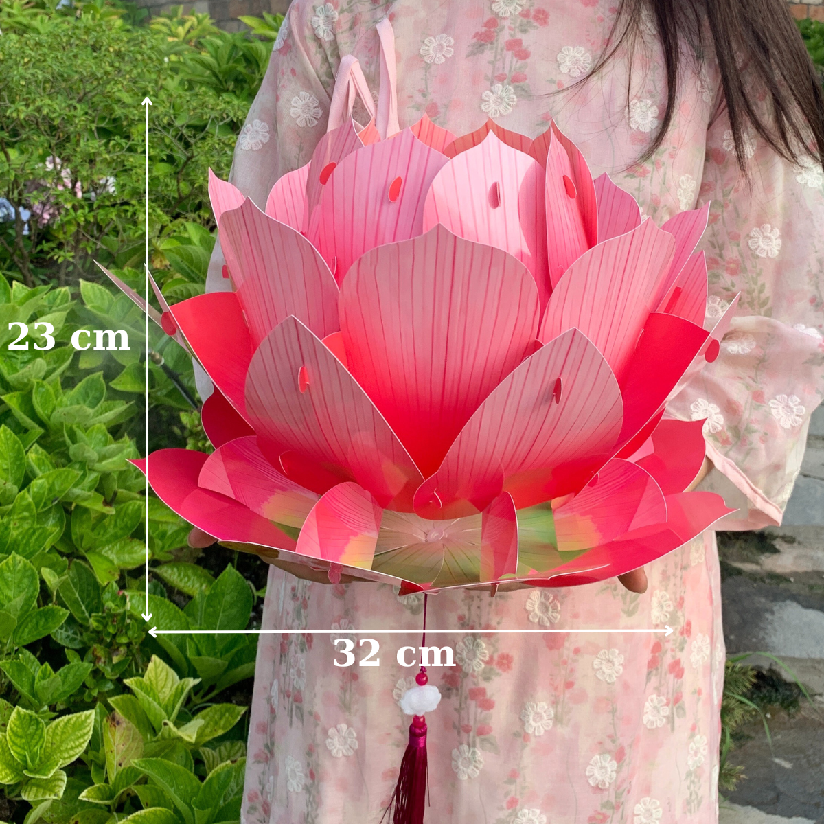 Lồng đèn Phật đản, Phật giáo – Lồng đèn hoa sen OTP màu hồng – Lồng đèn nhựa tự lắp ráp – Kích thước 23x32cm