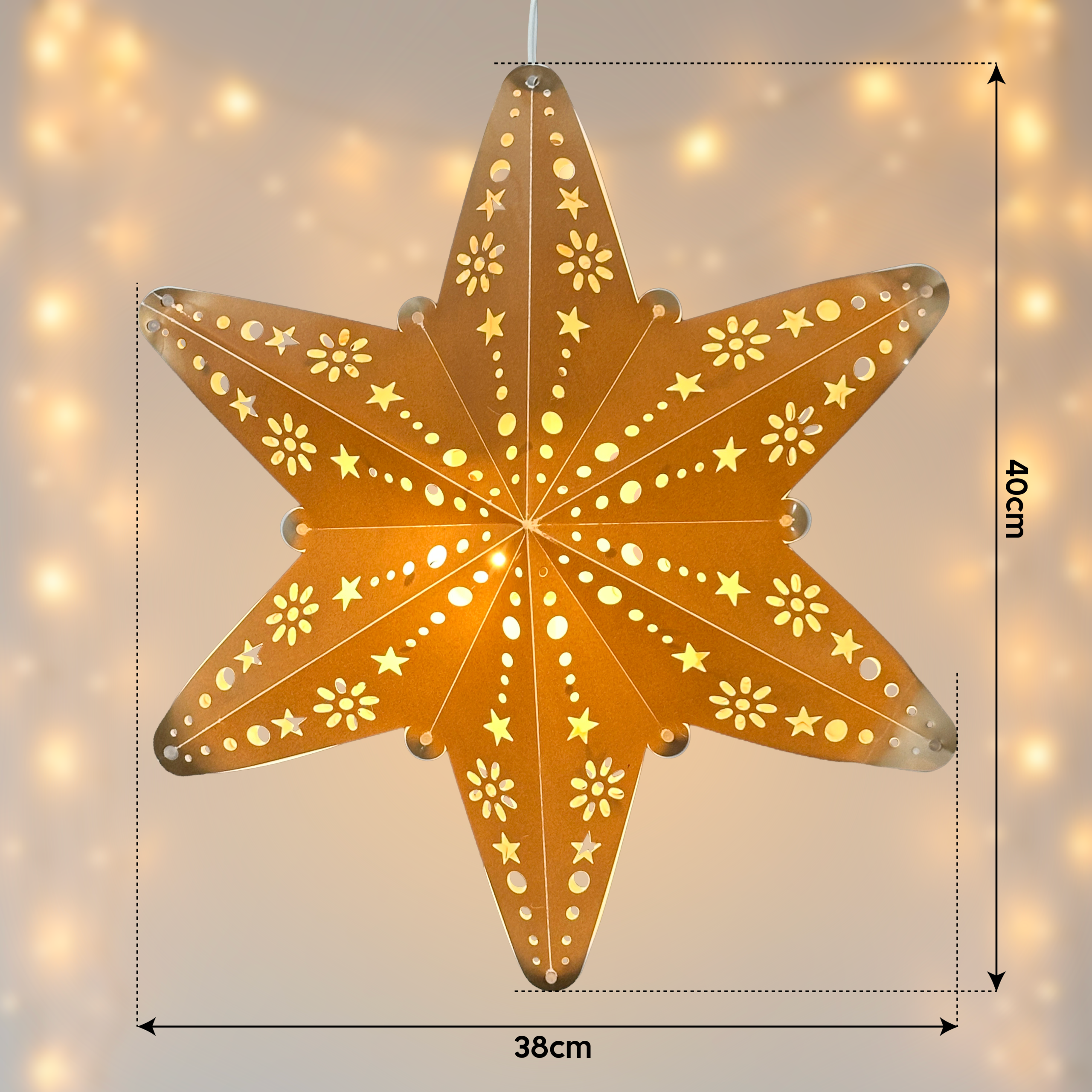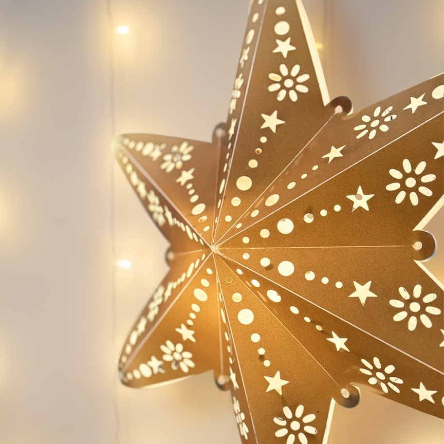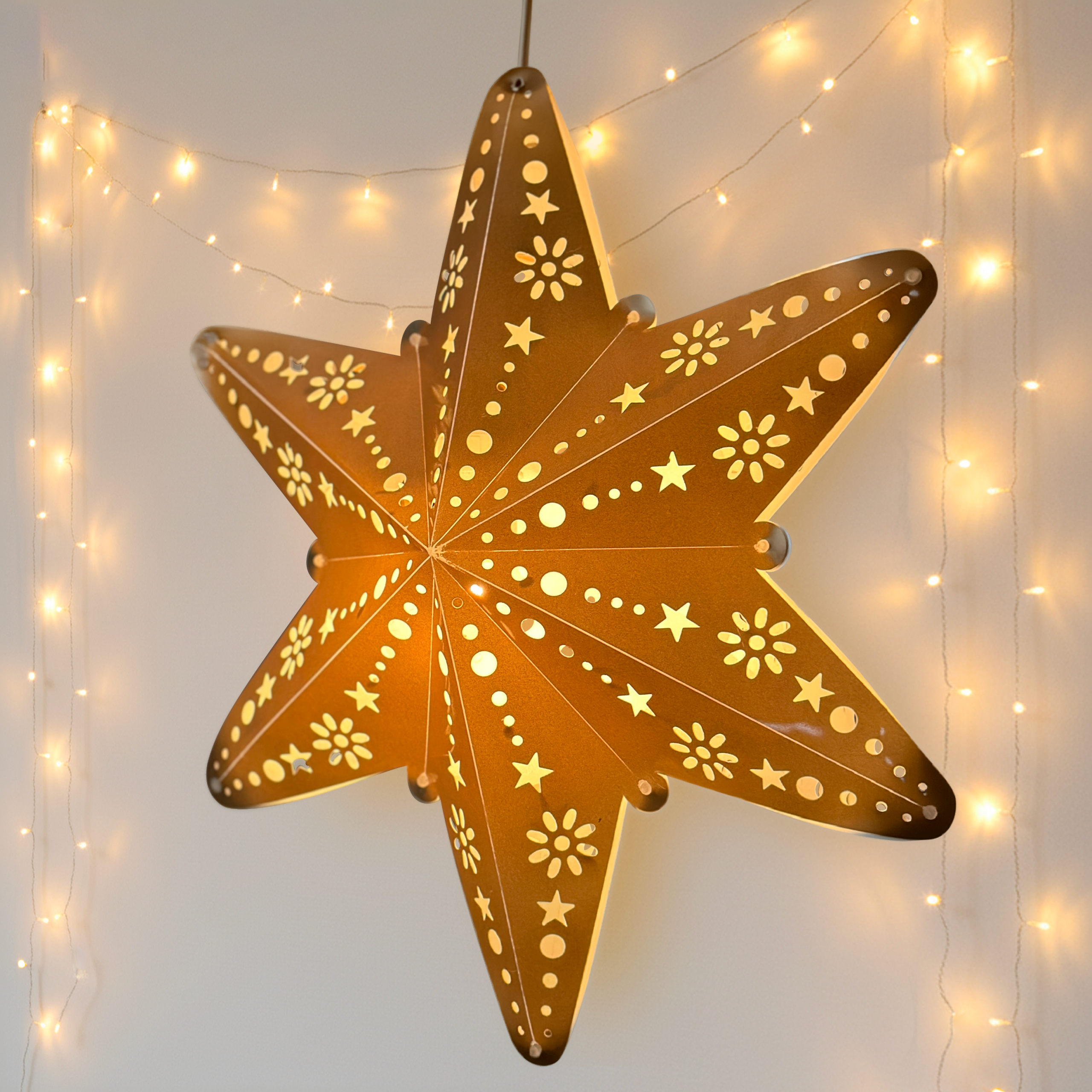 Họa tiết hoa và chấm tròn được thiết kế riêng cho ON THE PAPER, không thể tìm thấy ở bất kỳ nơi nào khác. Đây là dấu ấn cá nhân, đảm bảo không gian của bạn là độc nhất vô nhị. Khi thắp sáng, ngôi sao không chỉ phát sáng, mà còn tạo ra chiều sâu 3D nhờ sự sắp xếp khéo léo của các lớp nhựa và các chi tiết cắt, khiến người nhìn có cảm giác ngôi sao đang phát sáng từ trong ra ngoài một cách sống động.