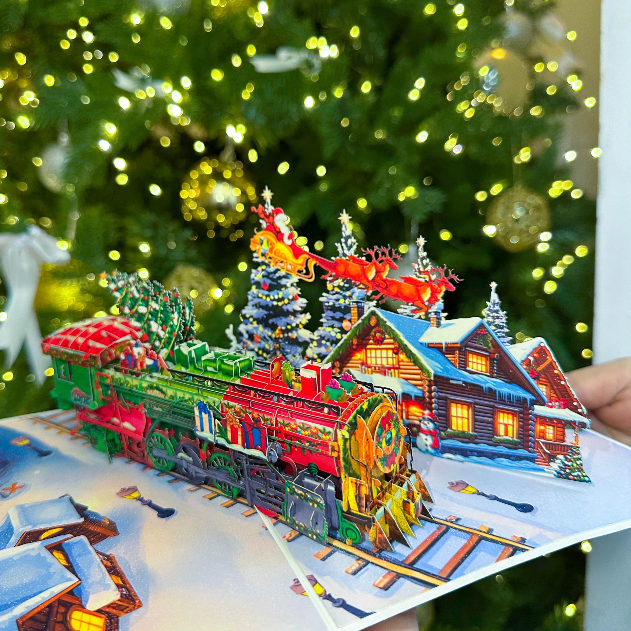 Điểm đặc biệt lớn nhất của Thiệp 3D Đoàn Tàu Giáng sinh ON THE PAPER nằm ở khả năng kể một câu chuyện Giáng Sinh đầy đủ chỉ trong một tấm thiệp nhỏ. Khi mở thiệp ra, toàn bộ mô hình bật lên một cách tinh xảo, tái hiện trọn vẹn không khí lễ hội: